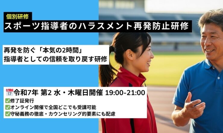 【2025年10月オンライン開催スポーツ指導者のハラスメント研修|パワハラ・セクハラ対策に対応 なぜ今、スポーツ指導者にハラス...