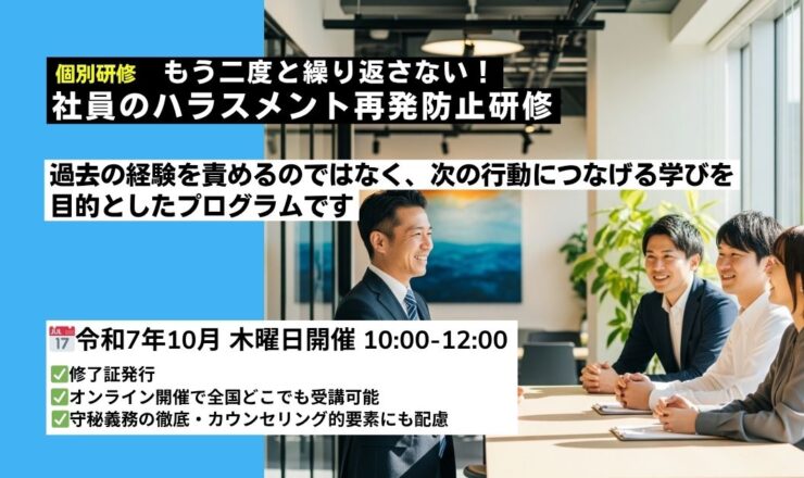 【2025年10月オンライン】社員のハラスメント研修|再発防止|パワハラ・セクハラ対策に対応 社員のハラスメント再発防止研修と...