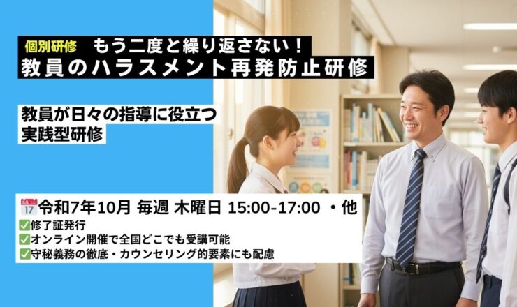 【2025年10月オンライン開催】教員のハラスメント研修|再発防止|学校のパワハラ・セクハラ対策に対応 教員のためのハラスメン...