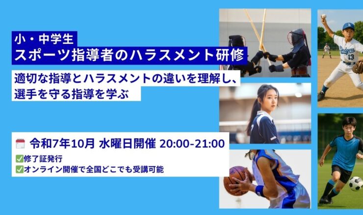 【2025年10月オンライン開催】小学中学生スポーツ指導者のハラスメント研修|パワハラ・セクハラ対策に対応 小学・中学生のスポ...