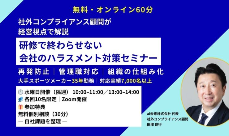 会社のハラスメント対策セミナー| 無料・オンライン・60分