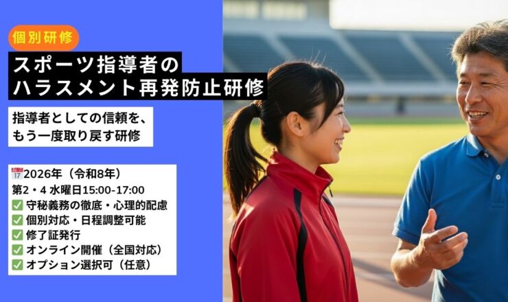 スポーツ指導者のハラスメント再発防止研修|オンライン1on1・120分 ― パワハラ・セクハラを繰り返さない指導へ。信頼を取り...