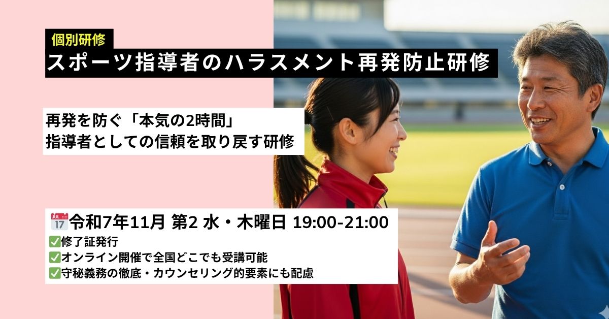 【2025年11月オンライン】スポーツ指導者のハラスメント研修|再発防止|パワハラ・セクハラ対策