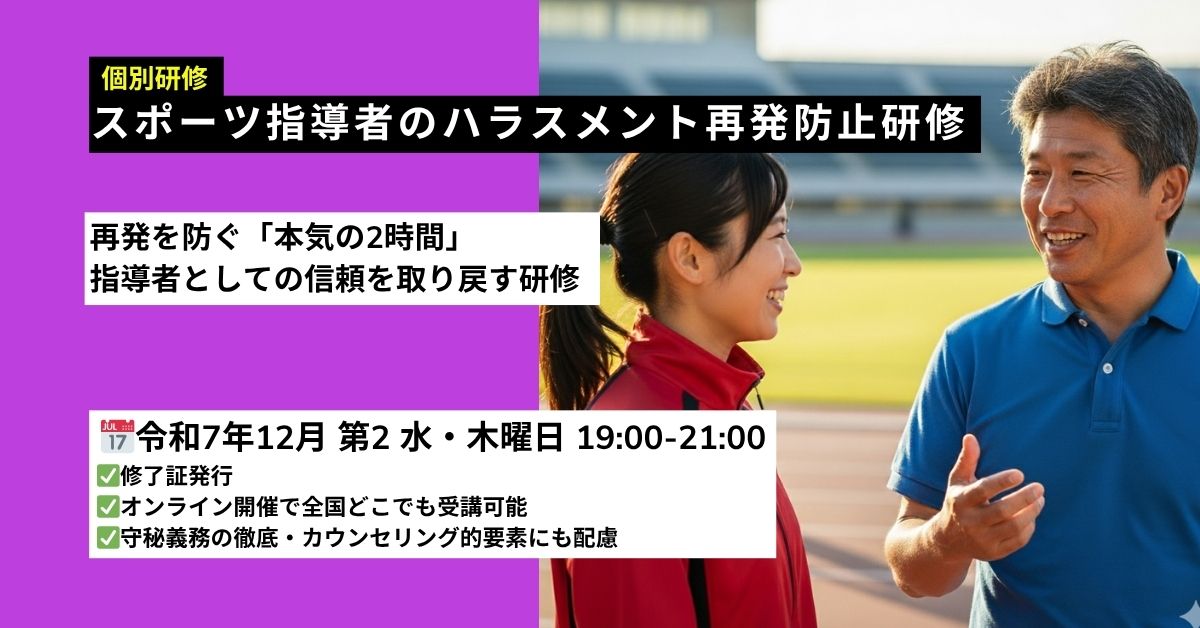 スポーツ指導者のハラスメント再発防止研修|パワハラ・セクハラ対策【2025年12月オンライン】