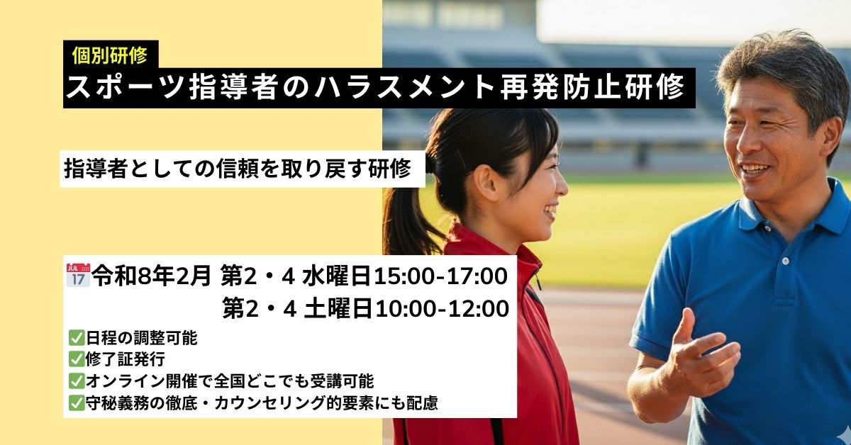 【2026年(令和8年)2月オンライン開催】スポーツ指導者のハラスメント研修|再発防止|パワハラ・セクハラ対策に対応