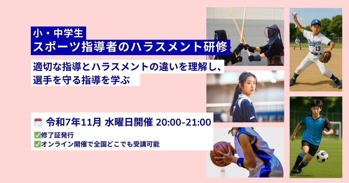 【2025年11月オンライン開催】小学中学生スポーツ指導者のハラスメント研修|パワハラ・セクハラ対策に対応