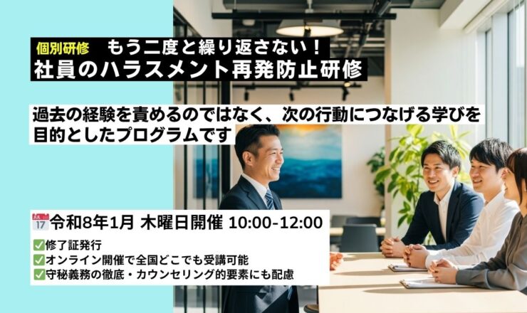 【2026年(令和8年)1月オンライン】社員のハラスメント研修|再発防止|パワハラ・セクハラ対策に対応 社員のハラスメント再発...