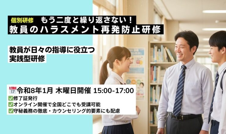 【2026年(令和8年)1月オンライン開催】教員のハラスメント研修|再発防止|学校のパワハラ・セクハラ対策に対応 教員のための...