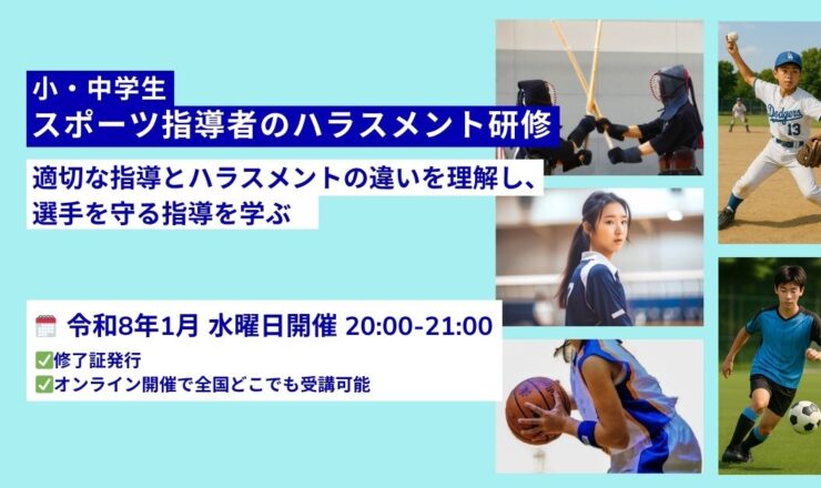 【2026年(令和8年)1月オンライン開催スポーツ指導者のハラスメント研修|パワハラ・セクハラ対策に対応 なぜ今、スポーツ指導...