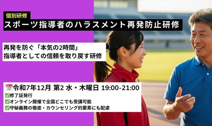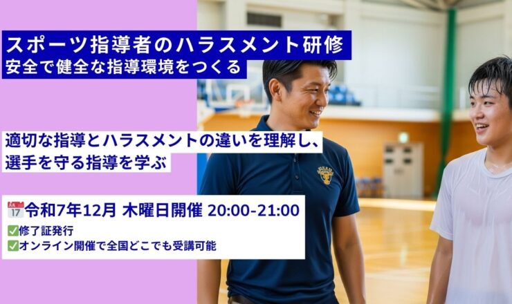 【2025年12月オンライン開催】スポーツ指導者のハラスメント研修|パワハラ・セクハラ対策に対応 なぜ今、スポーツ指導者にハラ...