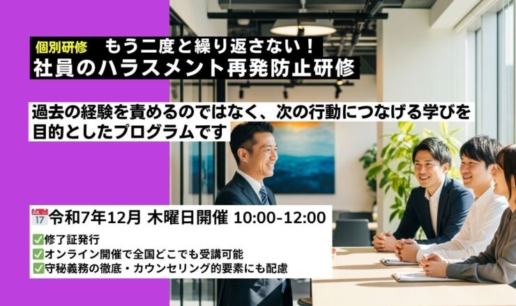 【2025年12月オンライン】社員のハラスメント研修|再発防止|パワハラ・セクハラ対策に対応 社員のハラスメント再発防止研修と...