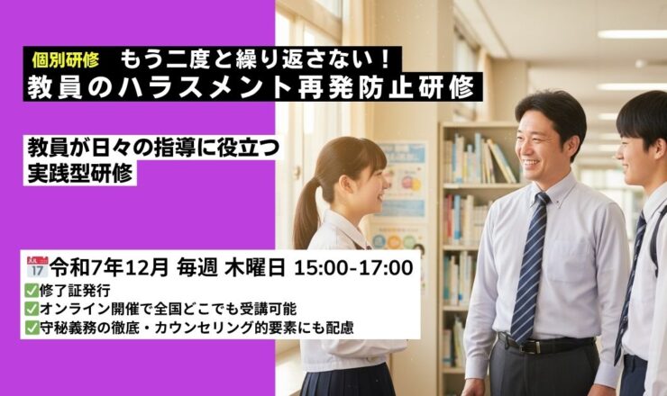 【2025年12月オンライン開催】教員のハラスメント研修|再発防止|学校のパワハラ・セクハラ対策に対応 教員のためのハラスメン...